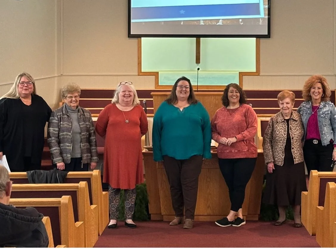 United District WMA 2024 Officers (L-R): President Donna Gray; 2nd Vice President Carolyn Colvert; Treasurer Brenda Carahan; Secretary Nina Ponder; 1st Vice President Jessica Haden; Sunbeam Promoter Sherry Laminack; Pianist/ Song Leader Judy Biggers.